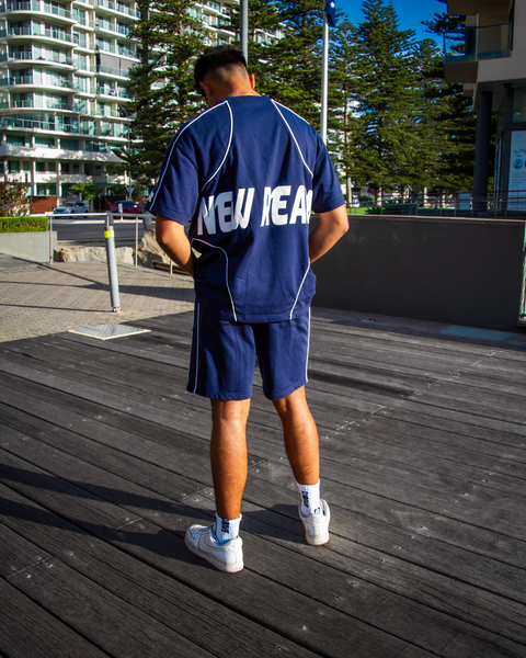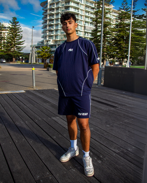 Apart of the “Take Risks To Create Your Story” Collection, the New Realm Midnight Blue Summer Shorts